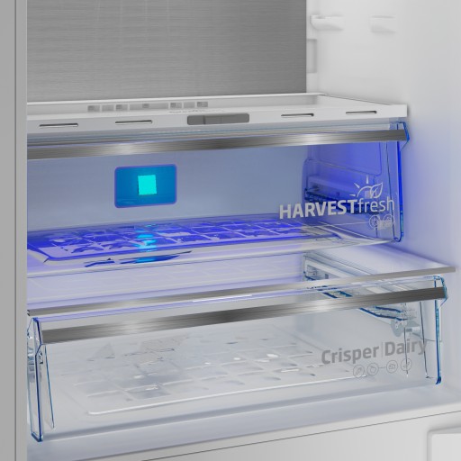 Innowacyjna technologia 3 kolorów, która zachowuje witaminy A i C w świeżych warzywach i owocach na dłużej. Niebieski, zielony i czerwony imitują 24-godzinny cykl słońca w specjalnej szufladzie HarvestFresh™.