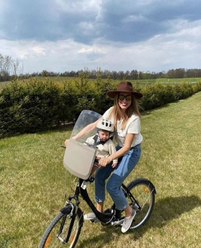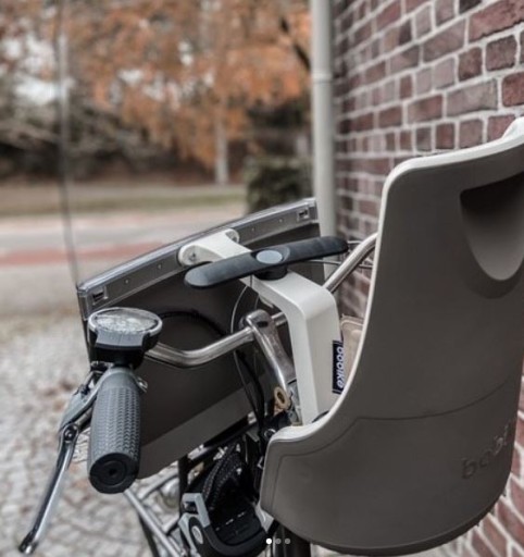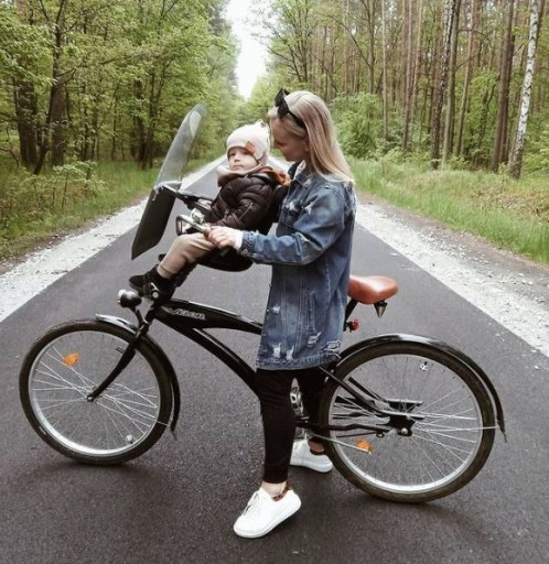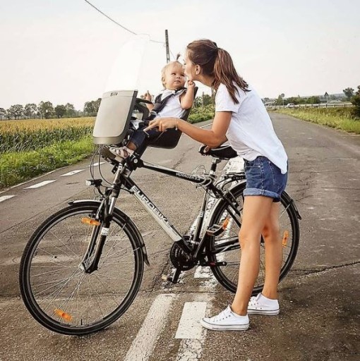 Fotelik posiada uniwersalny uchwyt montażowy, jest łatwy i szybki do zamontowania z przodu na wsporniku kierownicy roweru miejskiego.
