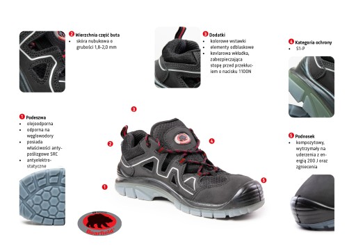 - kevlarowa, zabezpieczająca stopę przed przekłuciem o nacisku 1100N,