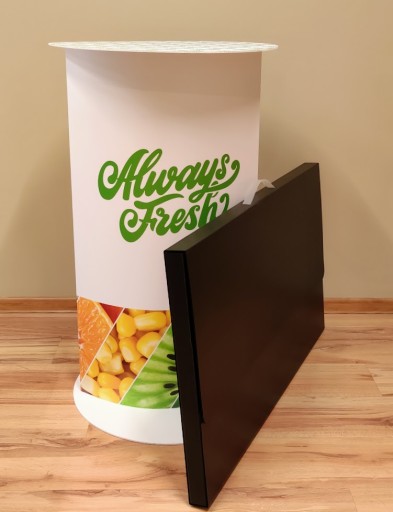 Składana trybunka 57cm wysokość 98cm lada z nadrukiem reklamowym
