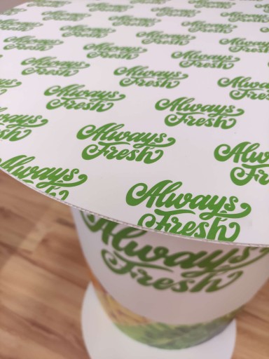 - pełnokolorowy UV (CMYK) na obustronnie białej tekturze mikrofala 1,5mm 390g, (fala E),druk może być inny na każdej ściance lub taki sam.
