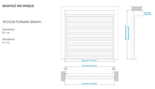 Skrzynia 250 do wysokości całkowitej bramy po obrysie zewnętrznym 215cm