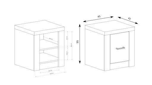 - szafka nocna Indianapolis I-24: 45 cm / 55 cm / 42 cm - 2 szt.