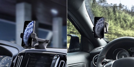 Uchwyt pozwala na różne opcje montażu i ustawień, dzięki czemu nada się do każdego samochodu. Bez problemu zamontujesz go zarówno na szybie jak i desce rozdzielczej.