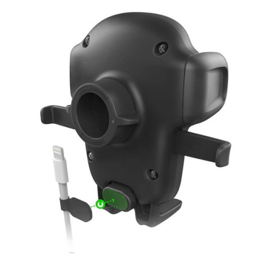 Posiada duży i wygodny przycisk zwalniający blokadę, automatycznie zamykającą ramiona uchwytu na urządzeniu, natomiast ściśnięcie dwóch pomniejszych ramion pomocniczych poniżej zwalnia telefon z zacisków uchwytu.