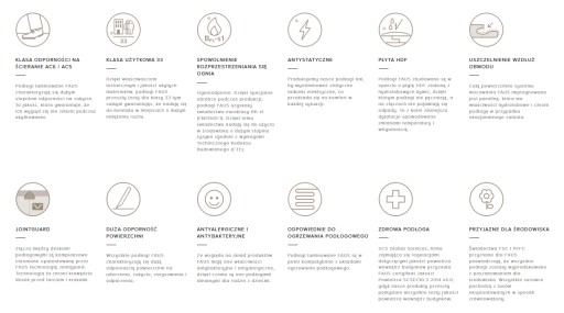 - Odporność ogniowa - podłogi FAUS mają świadectwo euroklasy Bfl-s1 (EN13501-1).