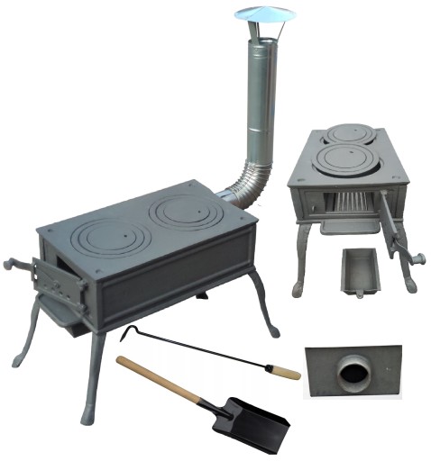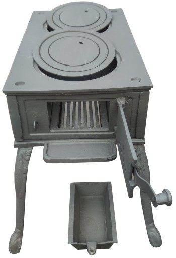 Palenisko żeliwne dwuotworowe z fajerkami wielokrążkowymi rusztem i szufladką żeliwna ( naturalne żeliwo)