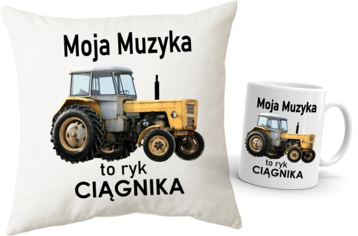 ZESTAW KUBEK + PODUSZKA z motywem Ursusa i zabawnym tekstem "Moja muzyka to ryk silnika"
