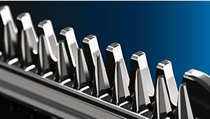 Uporaj się z każdym typem włosów dzięki zaawansowanej technologii DualCut: innowacyjny, dwustronny element tnący obcina włosy dwa razy szybciej niż jednostronne ostrza.