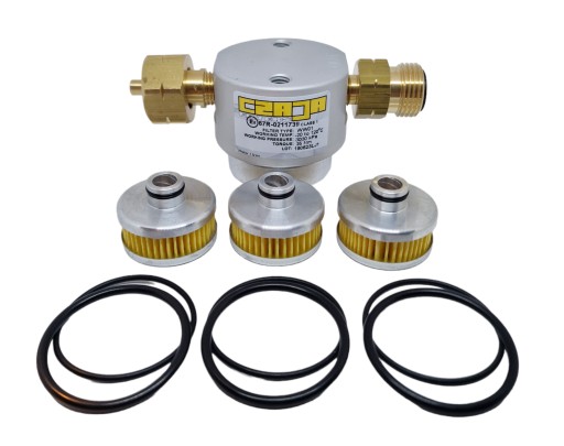 Filtr gazowy z wymiennymi wkładami do butli LPG 11 kg stosowanymi w wózkach widłowych czy kamperach. Może byś stosowany w każdej instalacji gazowej do filtrowania gazu.