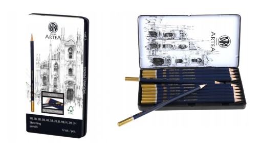 Ołówki, podobnie jak inne artykuły szkolne od firmy Astra, cechuje atrakcyjne wzornictwo, komfort i bezpieczeństwo użytkowania. Pięknie zapakowany w eleganckie metalowe pudełko zestaw dla artystów - rysowników.