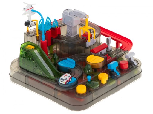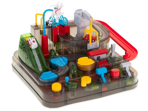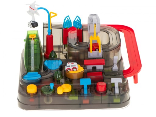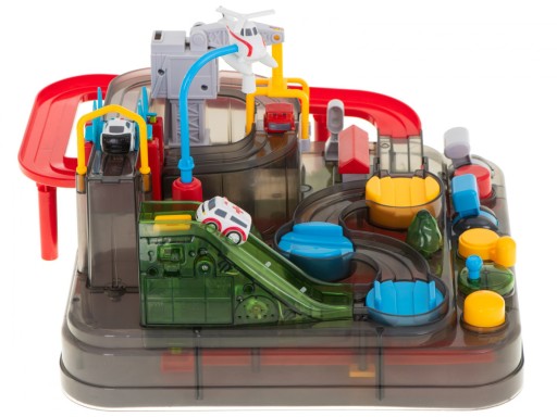 Wielofunkcyjny tor samochodowy będzie nie lada gratką dla żądnych przygód małych odkrywców.