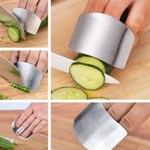 Stalowa osłona na palce do krojenia to praktyczne i bezpieczne narzędzie kuchenne, które chroni palce przed skaleczeniem podczas krojenia warzyw, owoców, sera, mięsa i innych produktów.