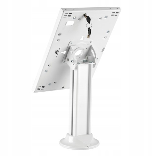 Stojak na tablet cechuje się wysoką jakością wykonania oraz solidną stalową podstawą z otworami montażowymi, zapewniającymi maksymalny poziom bezpieczeństwa dla umieszczonego w niej urządzenia. Prezentowana obudowa została odpowiednio przystosowana do montażu na poziomych powierzchniach.