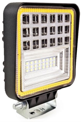 - Mocna lampa robocza. Wyposażona w 42 diody LED i dużą diodę COB o pomarańczowej barwie. Światło białe i pomarańczowe uruchamiane są rozdzielnie.