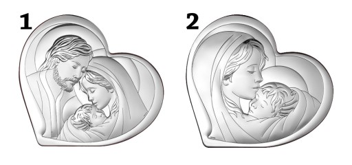 Obrazki w kształcie serca to produkt oryginalny produkcji włoskiej, wykonane są z innowacyjnych materiałów pokrytych srebrem pr. 999.95 i zabezpieczone lakierem dzięki któremu doskonale odbijają światło. Dzięki użytej specjalnej technologii, obrazki są odporne na śniedzenie i zarysowania.