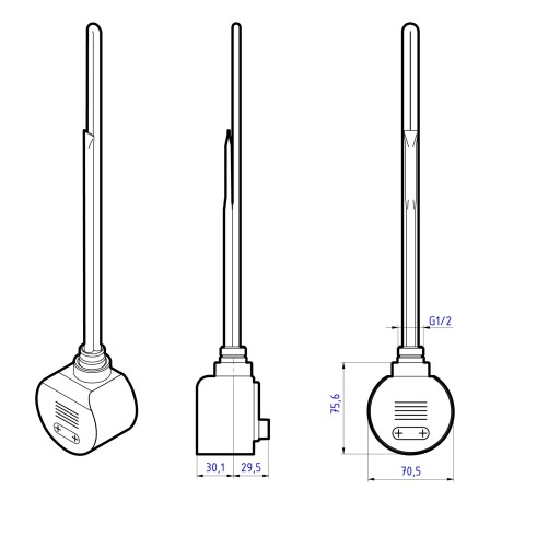 - Element grzewczy SMART można zamontować poziomo tak, żeby jego czujnik był najniżej (pręty grzewcze też poziomo, ale ponad nim). Czyli czujnik na dole grzejnika, dzięki czemu grzejnik będzie lepiej/efektywniej pracował. Sam sterownik będzie w prawdzie obrócony o 90° w stosunku do standardowego pionowego montażu, ale można przeprogramować go tak, aby klawisz + był zawsze wyżej niż -, niezależnie od tego czy grzałka montowana jest z prawej czy lewej strony grzejnika.