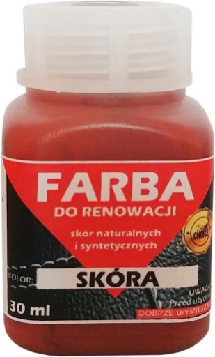 Farba do RENOWACJI SKÓRY to półmatowy lakier szybkoschnący, służący do renowacji skór licowych. Po nałożeniu lakieru i wyschnięciu skóra zyskuje elastyczną, półmatową powłokę, która jest odporna na zginanie, wilgoć, sól. Przywraca skórze pierwotny żywy kolor, miękkość oraz idealnie odnawia jej lico. Służy do odświeżenia kolorów skórzanych tapicerek samochodowych oraz kierownic, a także takich przedmiotów skórzanych jak np. torebki, paski, portfele, buty, kurtki, meble.