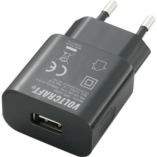 Ładowarka USB VOLTCRAFT SPS-1000 USB 5 W Maksymalne natężenie wyjściowe 1000 mA Ilość wyjść: 1 x USB