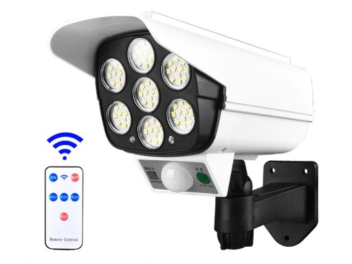 Wysokiej jakości atrapa kamery to urządzenie zasilane z panelu słonecznego co gwarantuje oświetlenie bez dodatkowego źródła zasilania. Wyposażona została w bardzo jasny panel 77 punktów LED COB o mocnym strumieniu światła.