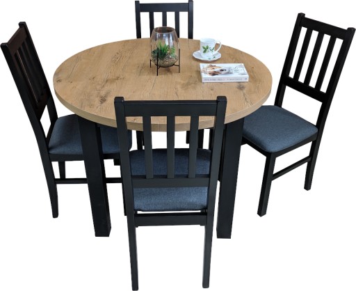 Stół rozkładany 100/180 okrągły 4 krzesła loft dąb