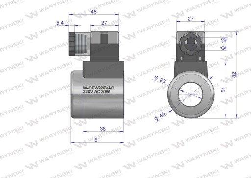 Cewka dzielnika elektrozaworu (W-E38DVS6/2. W-E12DVS6/2) 220V AC 30W marki WARYŃSKI
