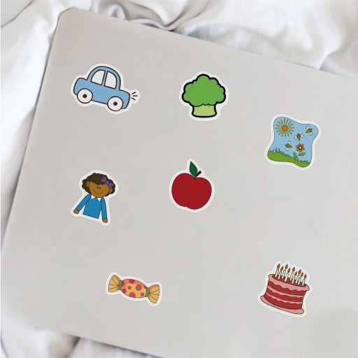 Każda naklejka w zestawie ma inny kształt