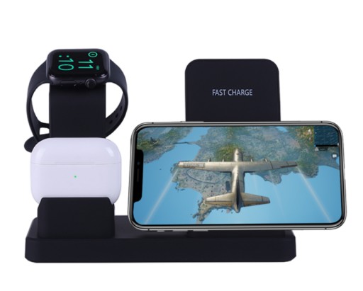 Ładowarka pozwala na jednoczesne ładowanie kilku typów urządzeń: telefonu komórkowego, słuchawek oraz zegarka Appel Watch.
