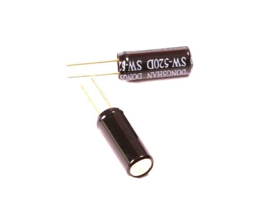 Czujnik drgań i wibracji SW-520D kompatybilny z Arduino. 5pF pojemności. Max. prąd to 30mA, a maksymalne napięcie 20V. Obwód czujnika jest otwarty i zamyka się w trakcie drgań i wstrząsów.