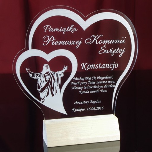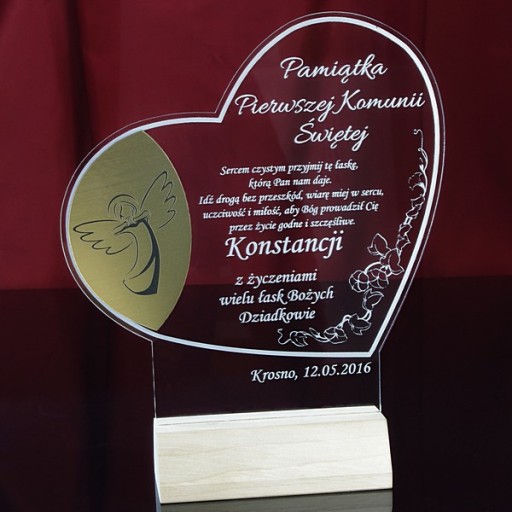- Tekst na pamiątce jest grawerowany nie ściera się jak farba