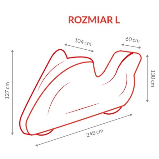 Rozmiar L - długość: 248 cm, wysokość: 127 cm