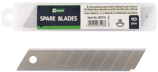 10 wymiennych ostrzy do dużych noży biurowych.