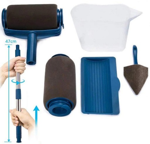 W zestawie otrzymasz wałek podstawowy, który świetnie sprawdzi się podczas malowania dużych powierzchni, a także mały wałek, w którym powierzchnia do malowania umiejscowiona jest pod kątem - będzie poręczny podczas malowania przy krawędziach, np, przy framugach czy kontaktach. Dodatkowo dostaniesz także narzędzie do malowania w narożnikach.