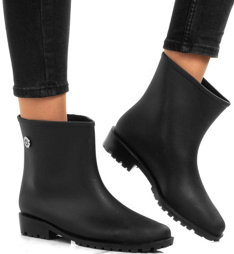 Eleganckie matowe kalosze, wykonane z tworzywa gumowego. Z boku cholewki ozdobny element. Idealne na deszczową pogodę!