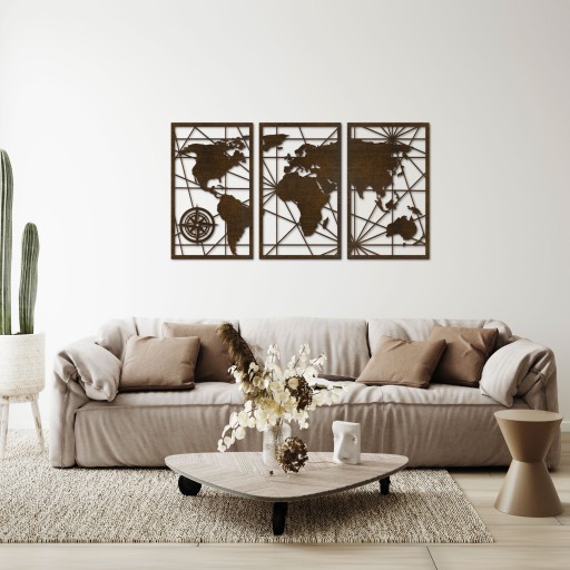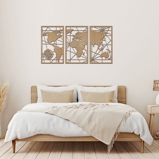 Drewniany Tryptyk MAPA to nowatorska dekoracja ścienna.