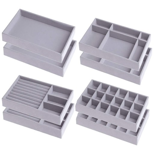 Organizer na tacę na biżuterię, zestaw 8 pojemników na biżuterię do układania w stos na pierścionki Kolczyki Naszyjnik Bransoletki Zdejmowany przegroda Wyświetlacz biuterii Pomysł na prezent Szary, 212 x 125 x 25mm