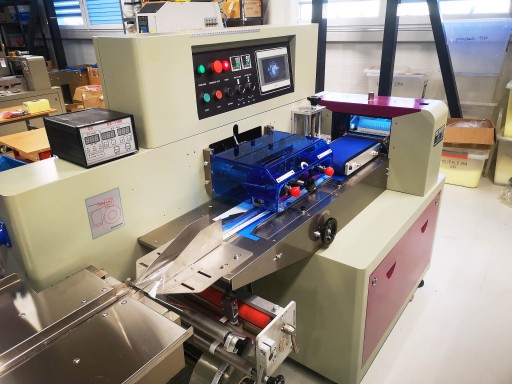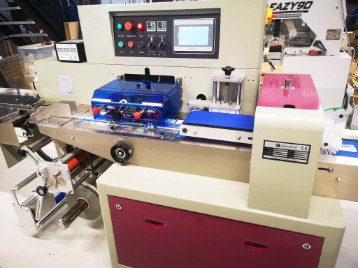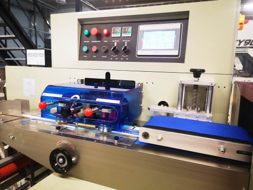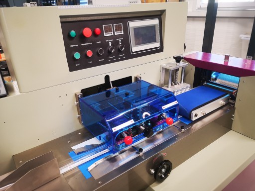 - panel PLC (zmiana długości opakowania, zmiana szybkości pakowania, regulacja położenia produktu względem noży itp),