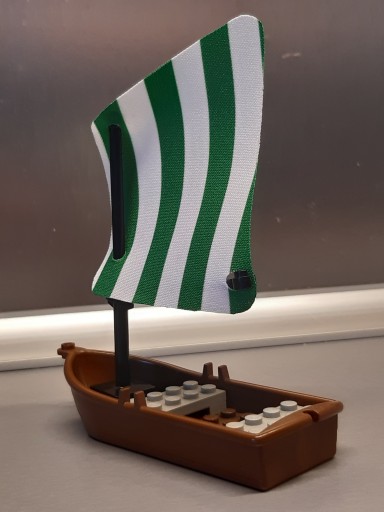 NOWY żagiel z grafiką nadrukowaną, wykończony ręcznie ( tkanina usztywniana i zabezpieczona przed strzępieniem się ) jak do 6273 6262 6267 6278 6277 ( ta oferta dotyczy customowego żagla z pasami w kolorze zielonym, który oryginalnie nie był produkowany przez LEGO w tym kolorze ) - jest on co najmniej tak samo dobry jak oryginalny, dopiero co wyjęty z opakowania. Wszystko dobrze widać na zdjęciach.