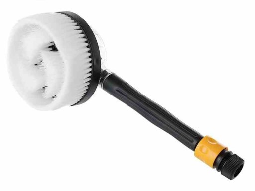 Szczotka napędzana ciśnieniem strumienia wody z podłączonego węża. Doskonała do mycia samochodów, felg, quadów, rowerów, narzędzi i mebli ogrodowych.