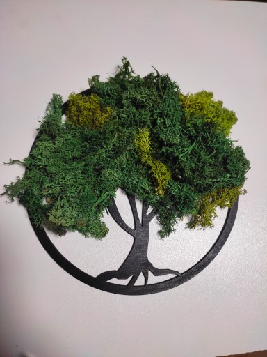 Przedstawiamy Państwu żywy obraz z mchu w kole z umieszczonym drzewem