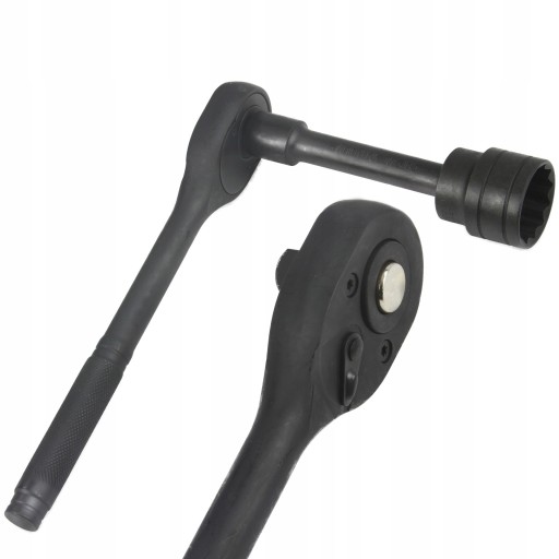 Kompletny zestaw składający się z nasadek, grzechotki, przedłużek, adapterów