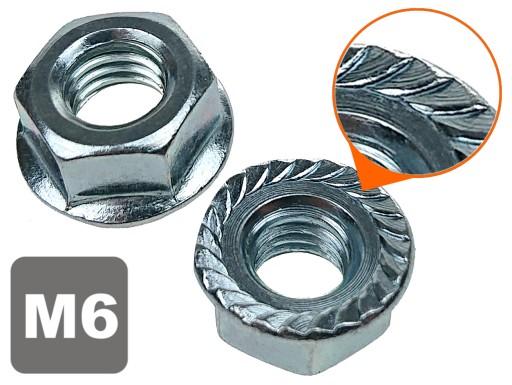 NAKRĘTKI M6 Z PODKŁADKĄ ZĄBKOWANĄ / KOŁNIERZEM ZĄBKOWANYM 100 SZTUK
