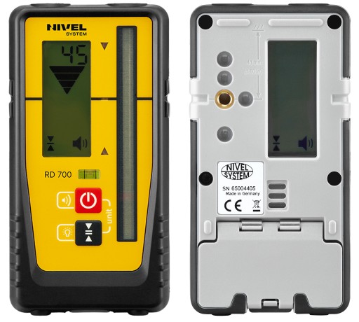 Czujnik RD700 współpracuje z niwelatorami rotacyjnymi z czerwonym i zielonym laserem.