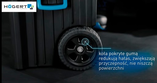 - 2 duże koła, wbudowane w dolny moduł, umożliwiają szybkie i wygodne przetransportowanie wózka w miejsce pracy;