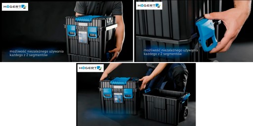 - 2-częsciowa, modułowa, mobilna skrzynka narzędziowa.
