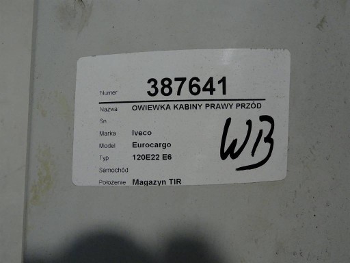 Przedmiot aukcji: OWIEWKA KABINY PRAWY PRZÓD