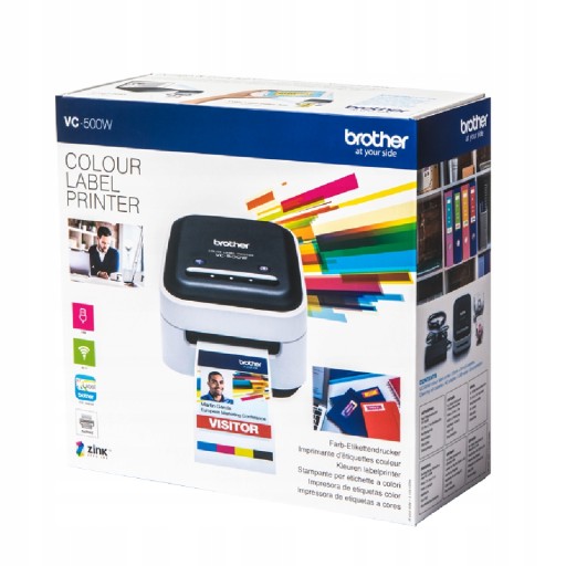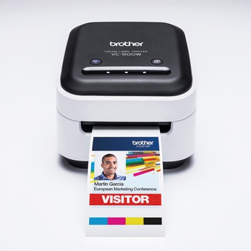 Brother VC-500W jest pierwszą kolorową drukarką etykiet firmy Brother. Drukuj oszałamiające wizualnie etykiety do użytku w całym biurze. Dodatkowo możesz dodać kolorowe obrazy takie jak zdjęcia lub logo firmy.