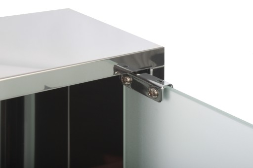 - Posiada szklane drzwi szronione od wewnątrz