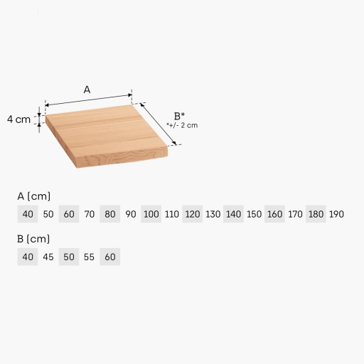 Blat marki LAMO Manufaktur jest wykonany z naturalnego drewna, które poddajemy sezonowaniu i suszeniu. Każdy egzemplarz jest jedyny w swoim rodzaju. Ze Względu na swoją grubość, która wynosi 4 cm, jest niezwykle wytrzymały.