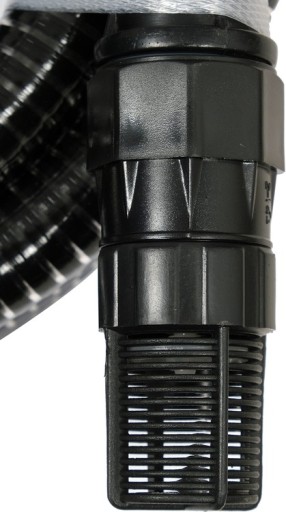 Elastyczny wąż ssący do pomp i hydroforów z zaworem zwrotnym i koszem zabezpieczającym przed zanieczyszczeniami.